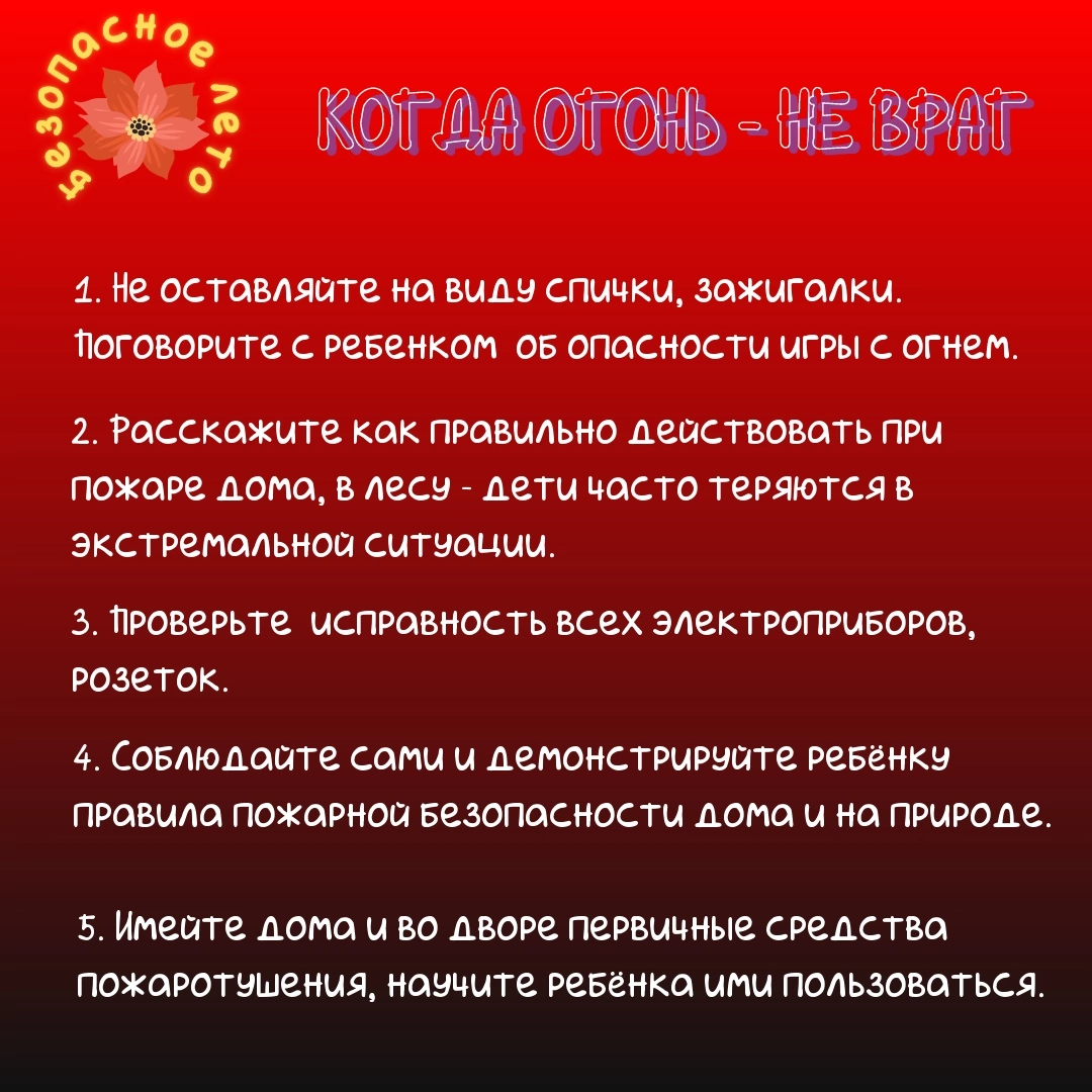· не играй со спичками, знай: огонь опасен для твоей жизни и жизни окружающих тебя людей.